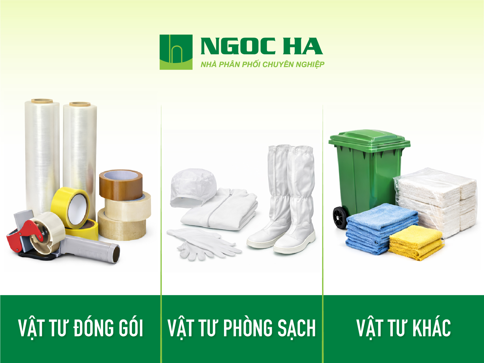 Ngọc Hà Group tự hào là đơn vị phân phối chuyên nghiệp, đáp ứng trọn gói nhu cầu vật tư phụ liệu cho các nhà máy, xí nghiệp trên toàn quốc: